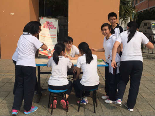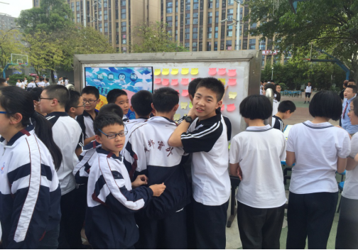 在5月25日当天,利用第二课堂时间进行初一年级心理游园大型活动(后因天气原因调整到5月24日)。活动由心理委员、心理协会成员、心理课代表作为学生组织者,分7组分别开展了:“大白抱抱”、“方格赛跑”、“呼啦圈赛跑”、“是真的吗”、“1-300写数字挑战”、“实外好伙伴”、“川师大学生一对多心理咨询”活动。活动设计兼顾班级团体建设、同学友情培养、宿舍友情维护、陪伴自己等多个心理层面,对于学生人际关系的培养具有积极意义。并且以积分、盖章、积分换礼品等方式作为激励方式,激发学生的参与兴趣,获得了良好的参与效果。同时,活动设计集体验性与知识性于一体,例如:“是真的吗”游戏,200多道心理学常见知识题目让学生做出真或假的判断,在游戏的过程中也很好的宣传了心理学的基础知识。