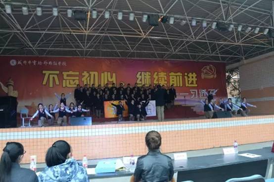 为纪念“红军长征胜利80周年”,2016年12月8日下午,我校初一年级全体师生在实外操场举行了歌咏比赛。