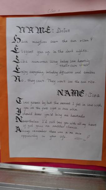 高一年级英文名藏头诗展览拉开帷幕
